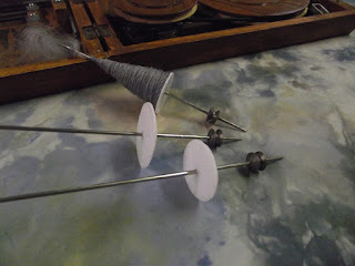 This is where Susan came in, I had way too much and needed help using this stuff up. We split the stash...I took predominantly blues and greens...Susan, reds and oranges. We also used some thrift shop finds to supplement....a kilt, a man's suit and a few other pieces were disassembled and in some cases dyed to give us exactly the extras we needed. (for some reason I don't have any of the greens pictured here) the pile on the right was the result of some dye experiments.